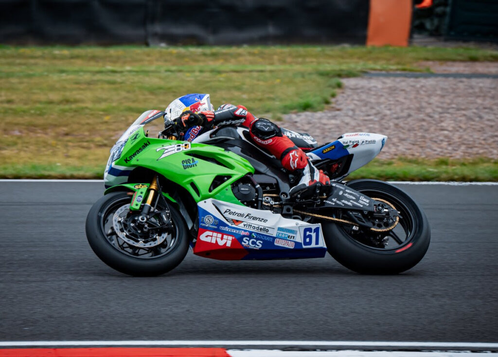 La primera carrera de la quinta ronda del campeonato WorldSSP se ha disputado hoy en Donington Park (Reino Unido). El piloto del Kawasaki Puccetti Racing Can Oncu tuvo algunas dificultades durante la sesión de entrenamientos del viernes y se clasificó decimocuarto en la Superpole. Esto significó que se alineó en la quinta fila de la parrilla para la carrera de la tarde, que se disputó en condiciones frescas y nubladas pero sobre una pista seca.